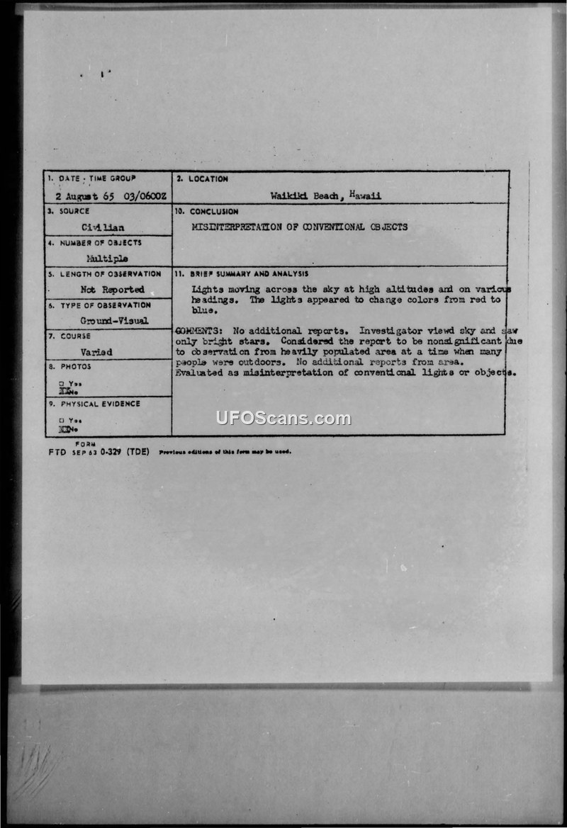 U.F.O.'s in Hawaii - 2 August to 5 August 1965