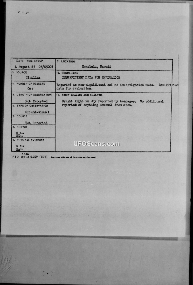 U.F.O.'s in Hawaii - 2 August to 5 August 1965