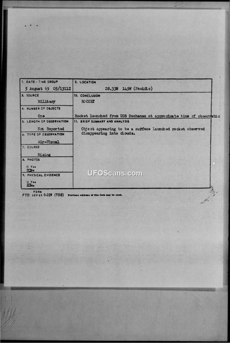 U.F.O.'s in Hawaii - 2 August to 5 August 1965