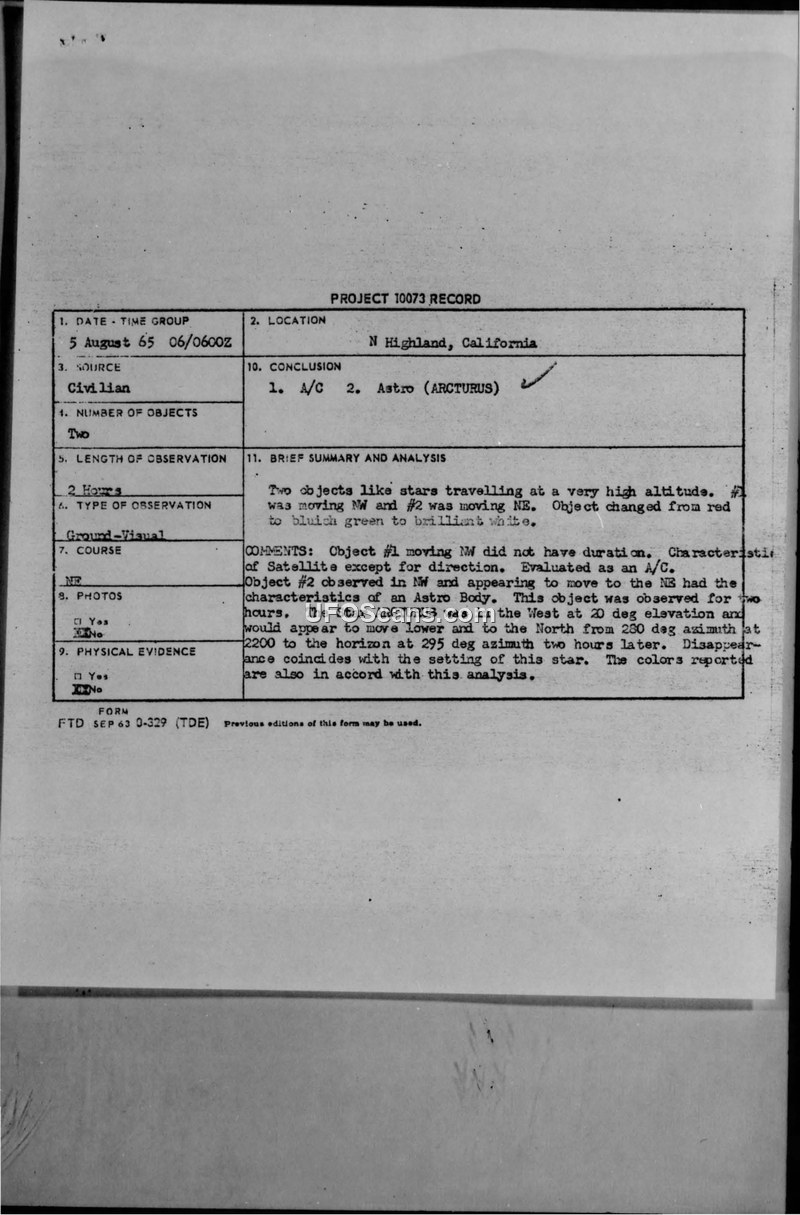 Project 10073 Record — North Highlands, California, 5 August 1965