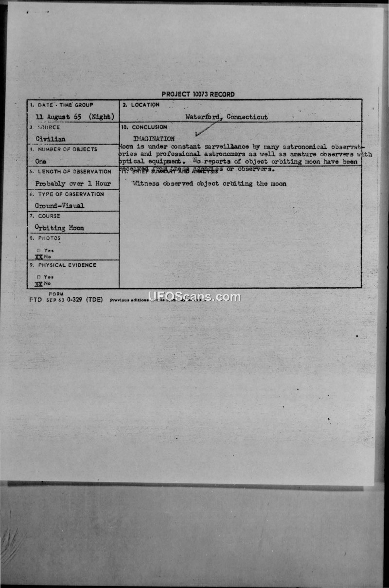 Project 10073 Record — Waterford, Connecticut, 11 August 1965