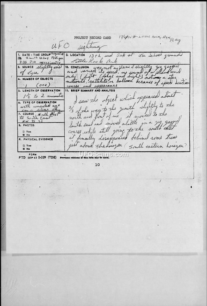 UFO Sighting, 16 August 1965, Little Rock, Arkansas