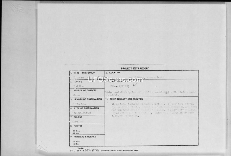 Project 10073 Record: Sighting Report - New Milford, Connecticut, August 21, 1965