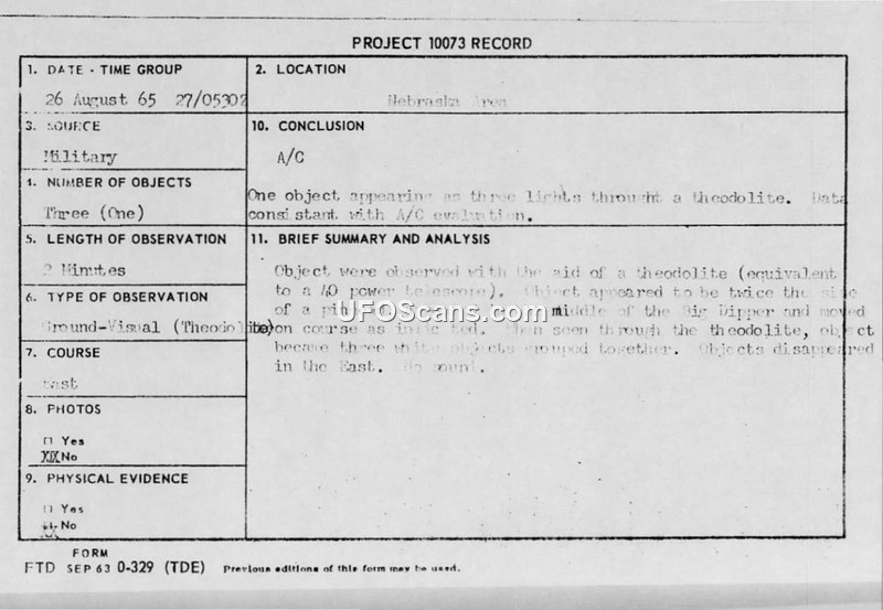 Project 10073 Record — Nebraska Area, 26 August 1965