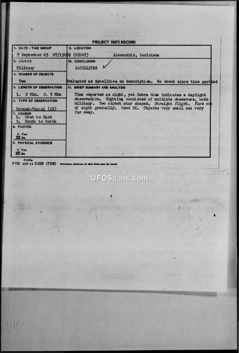 Project 10073 Record — Alexandria, Louisiana, 7 September 1965
