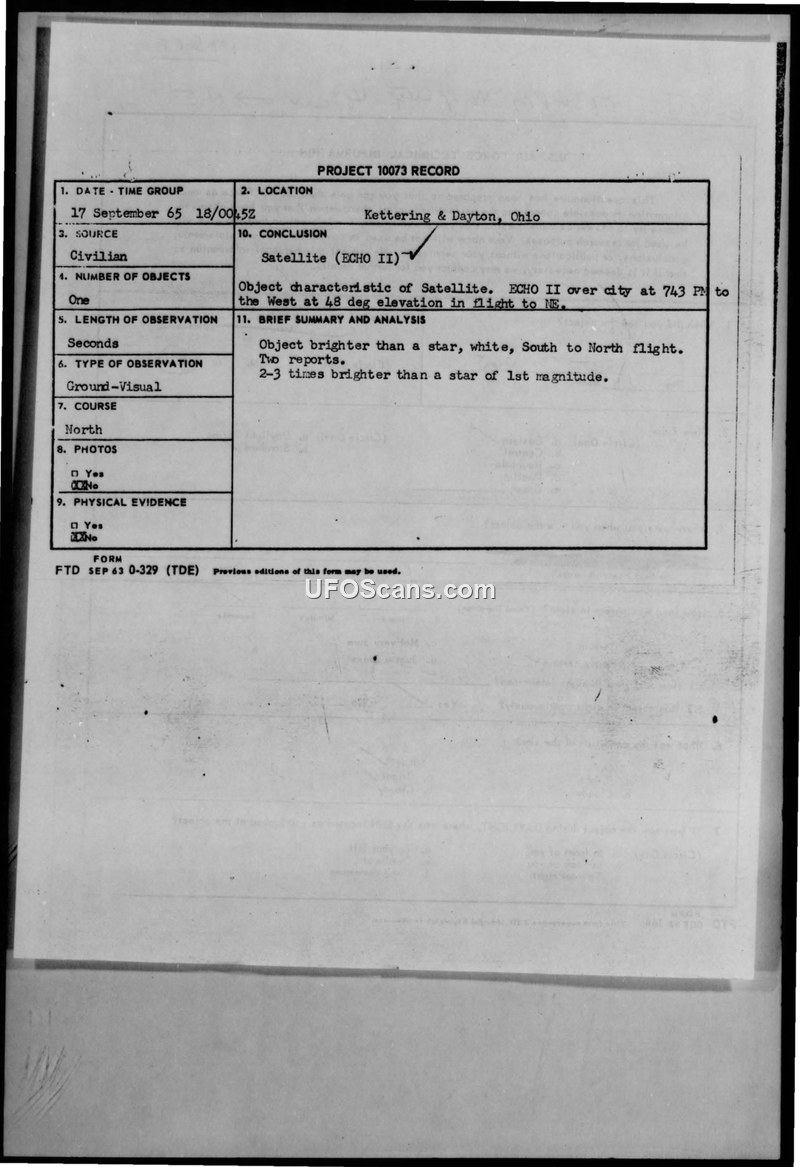 Project 10073 Records — Kettering & Dayton, Ohio, September 1965