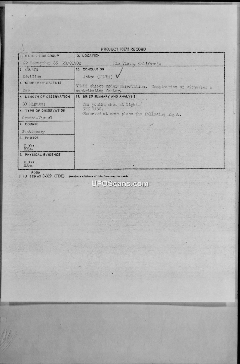 Project 10073 Record — Rio Vista, California, 22 September 1965