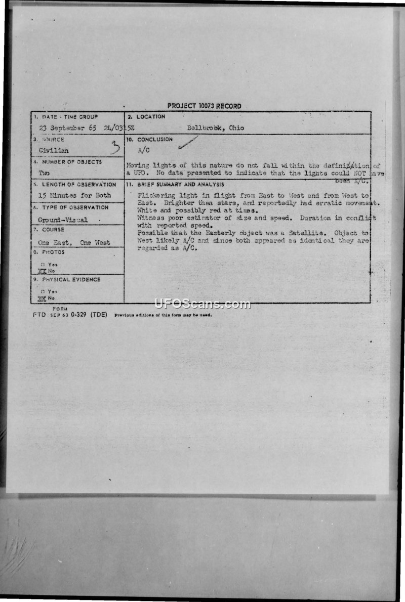 Project 10073 Record — Bellbrook, Ohio, 23 September 1965