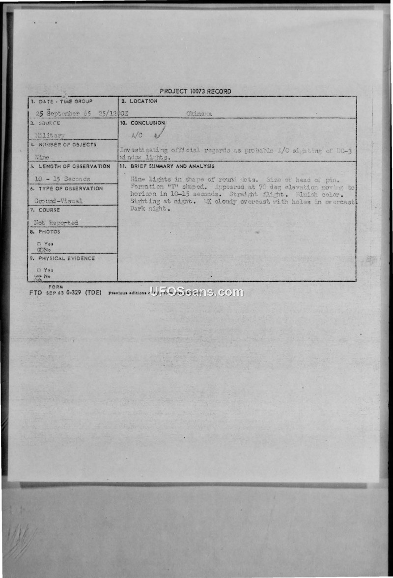 Project 10073 Record — Sighting Report, Okinawa, 25 September 1965