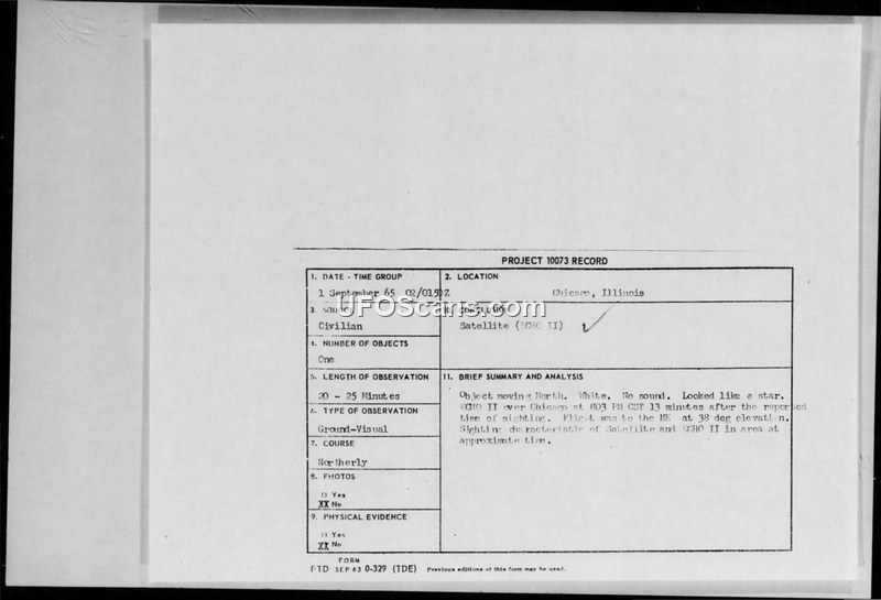 Project 10073 Records — Chicago, Illinois, September 1965