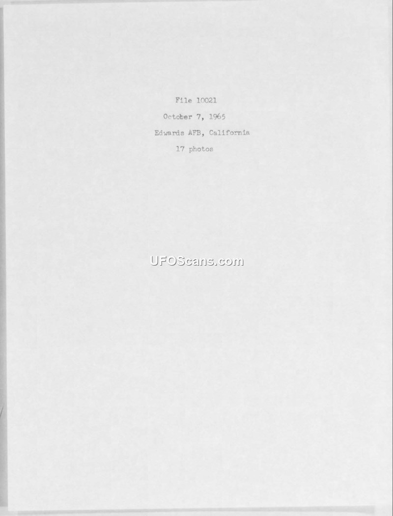 This document is a file containing 17 photographs related to an unidentified aerial phenomenon event at Edwards AFB on October 7, 1965. It provides no narrative analysis or conclusions.