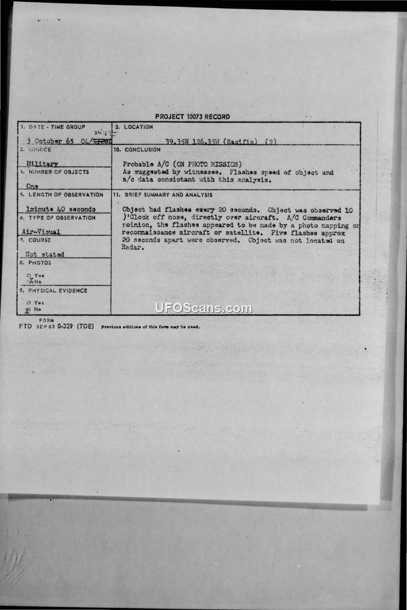 Project 10073 Record — Sighting of 3 October 1965