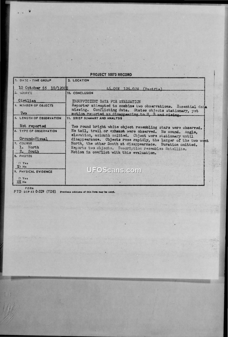 Project 10073 Record — Sighting of 10 October 1965