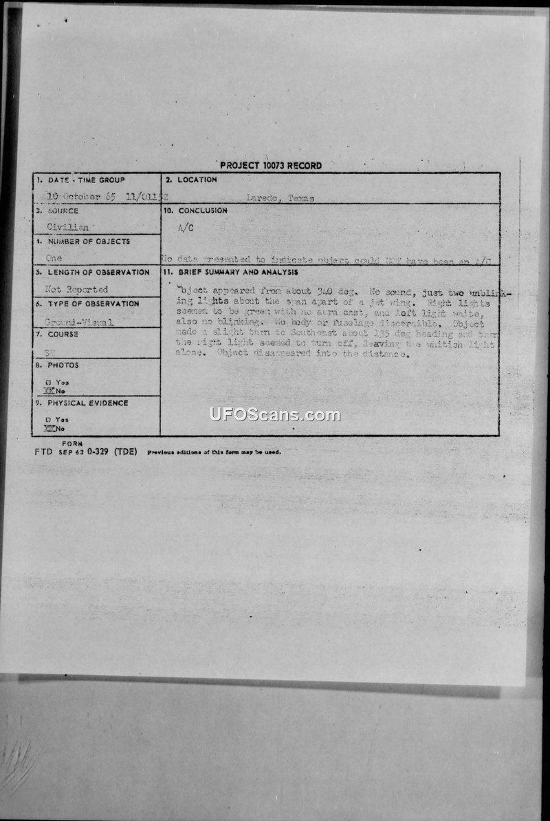 Project 10073 Record - Laredo, Texas - 10 October 1965