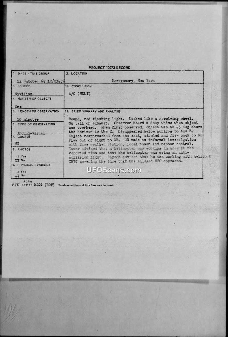 Project 10073 Record — Montgomery, New York, 12 October 1965
