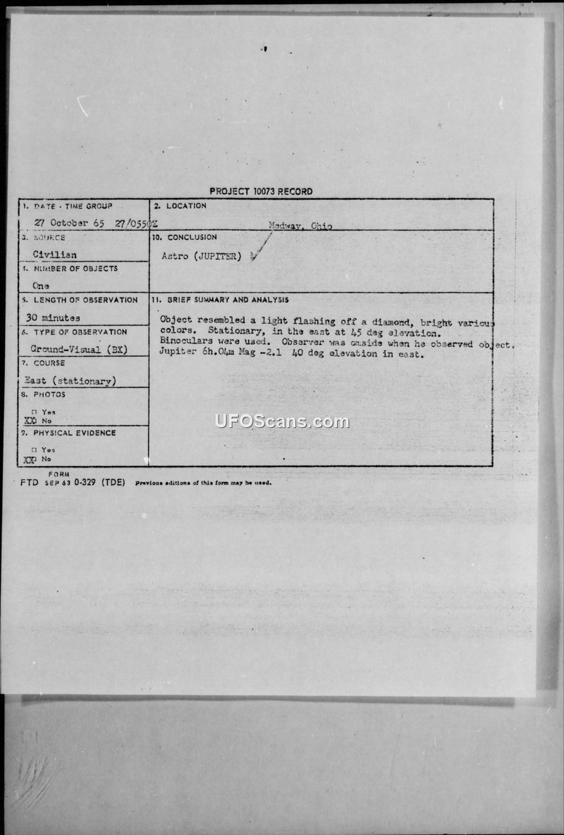 Project 10073 Record — Medway, Ohio, 27 October 1965