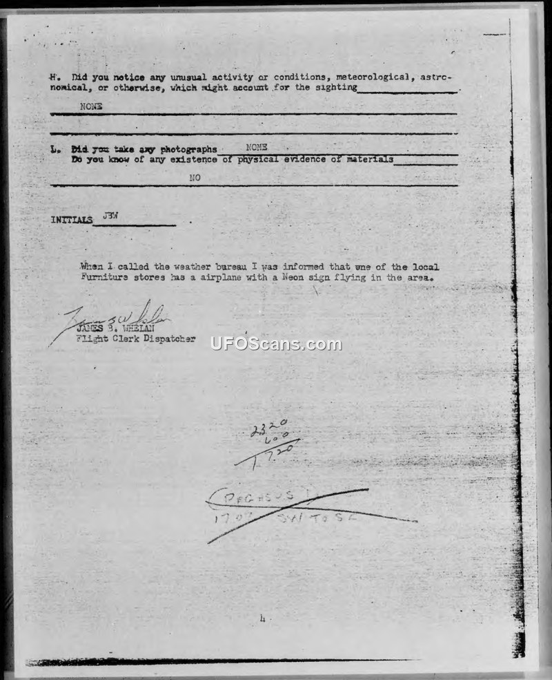 U.F.O. Sighting Report — Chicago, Illinois, November 1965