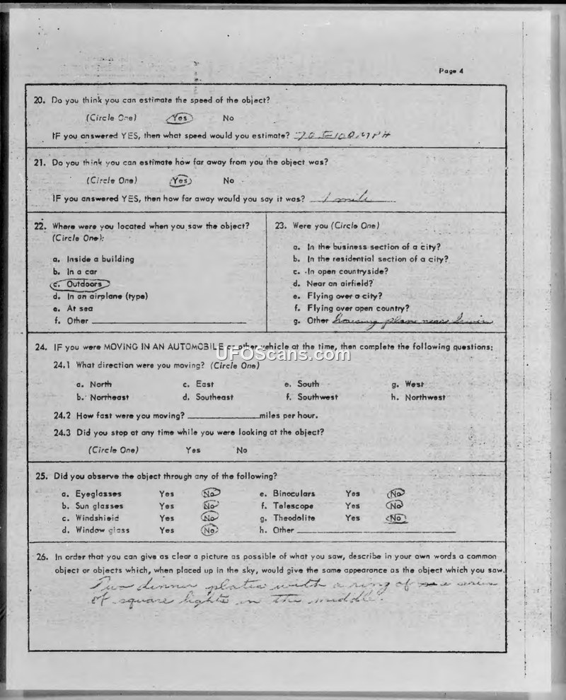 U.S. Air Force Technical Information Questionnaire - November 1965 Sighting