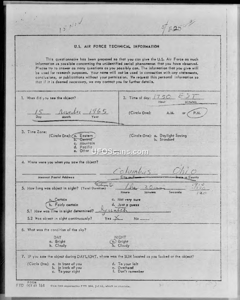 U.S. Air Force Technical Information Questionnaire - November 15, 1965