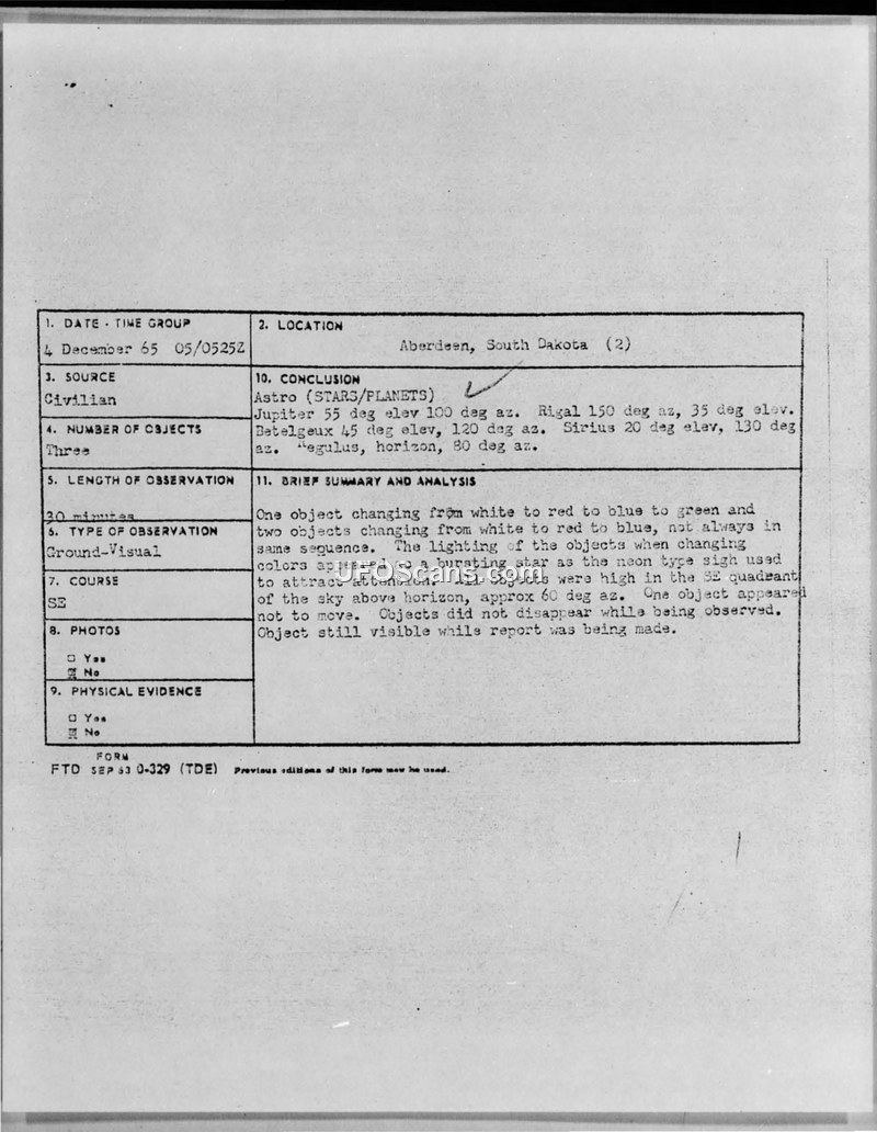 Incident Report — Aberdeen, South Dakota, 4 December 1965