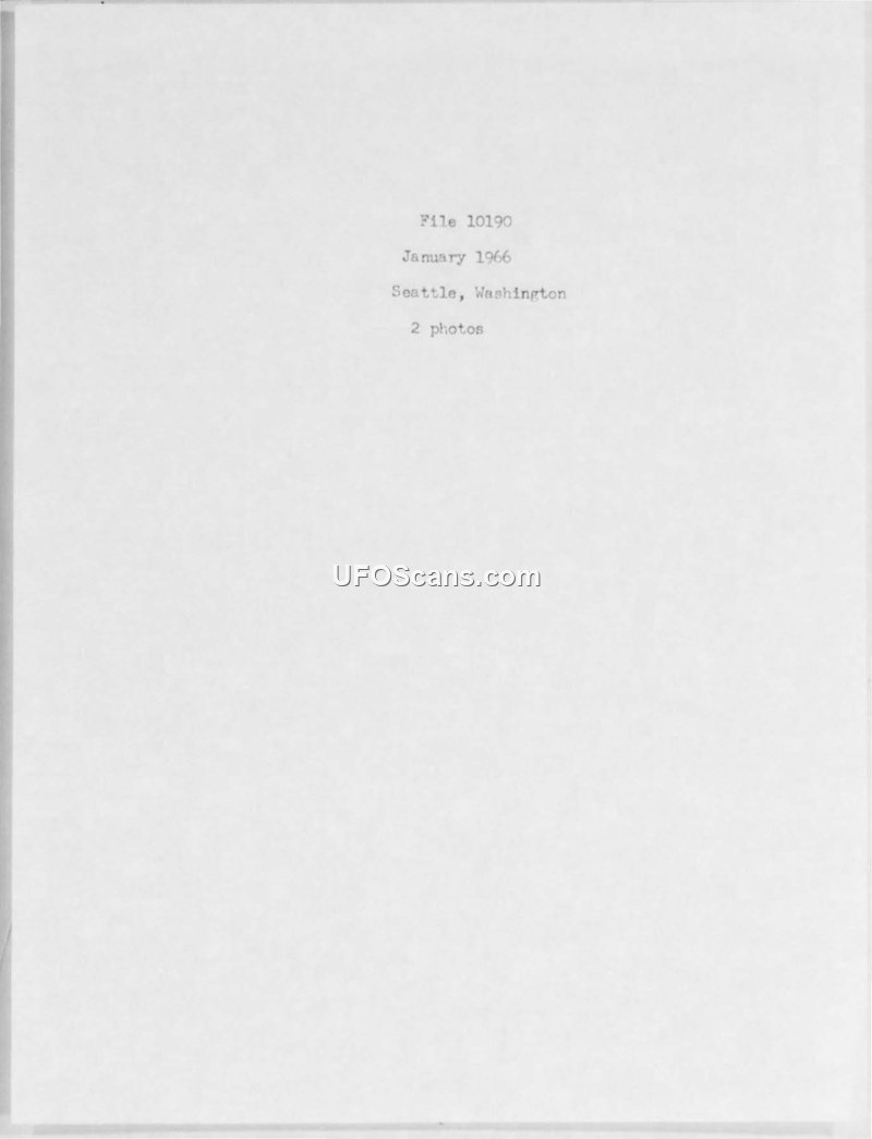 File 10190 is an unclassified Foreign Technology Division report from January 1966 containing two photographs of an unidentified luminous object in Seattle, Washington.