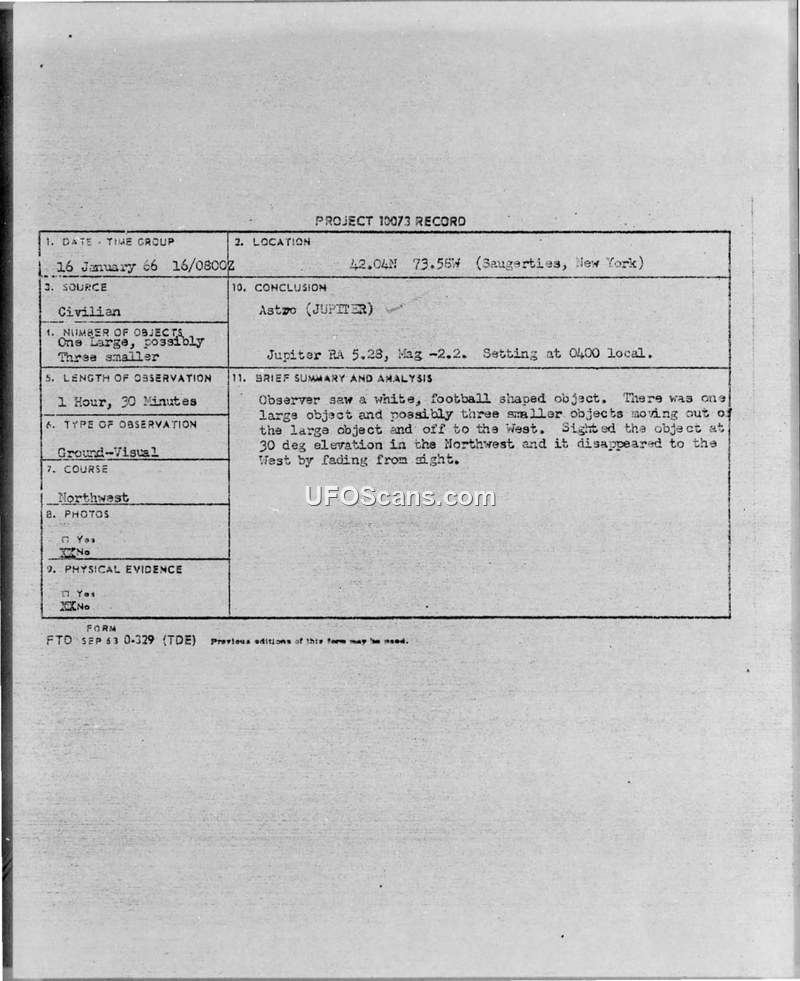 Project 10073 Record — Saugerties, New York, 16 January 1966