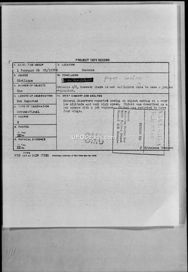 Project 10073 Record — Sighting in Safi, Morocco, 1 February 1966