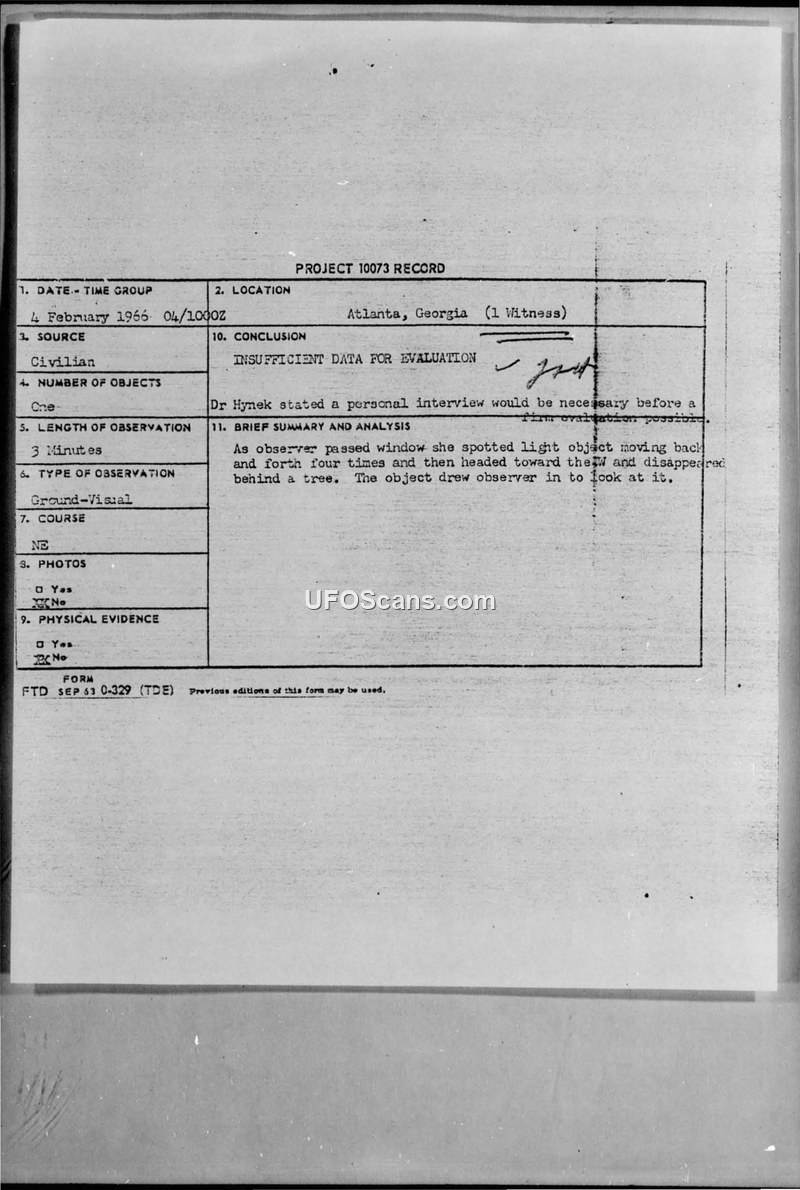 Project 10073 Record — Atlanta, Georgia, 4 February 1966