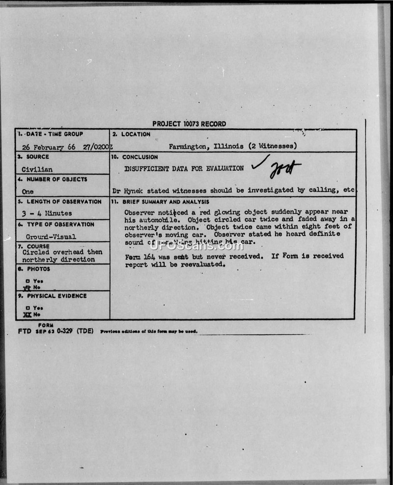 Project 10073 Record — Farmington, Illinois, 26 February 1966
