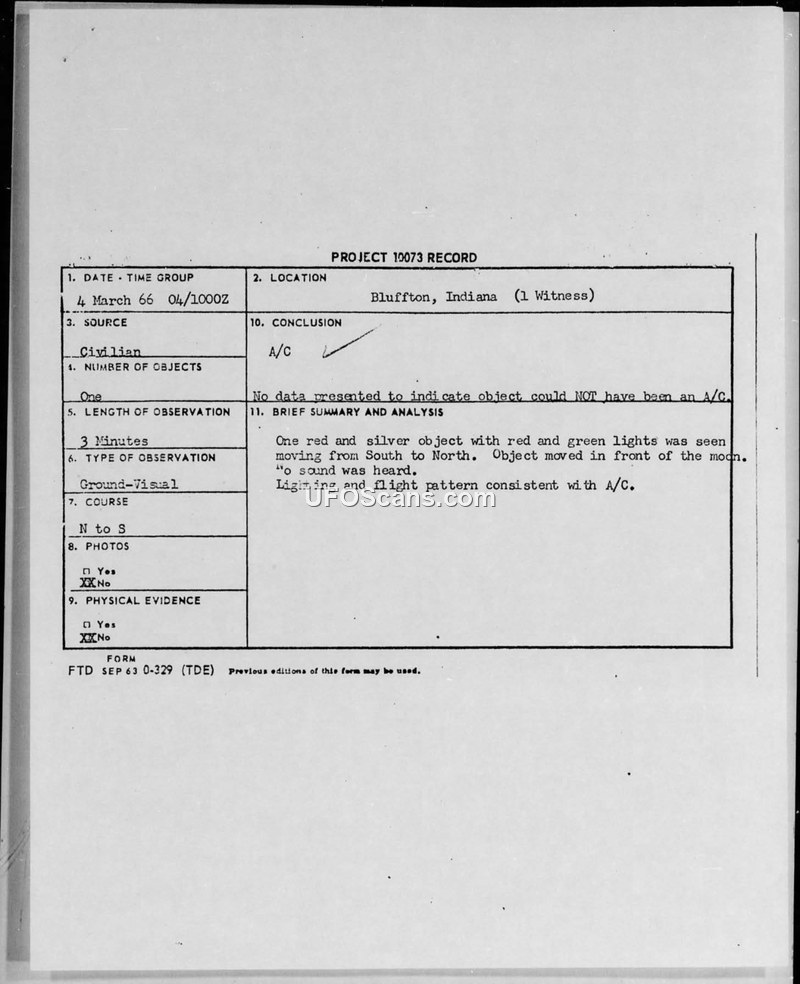 Project 10073 Record — Bluffton, Indiana, 4 March 1966