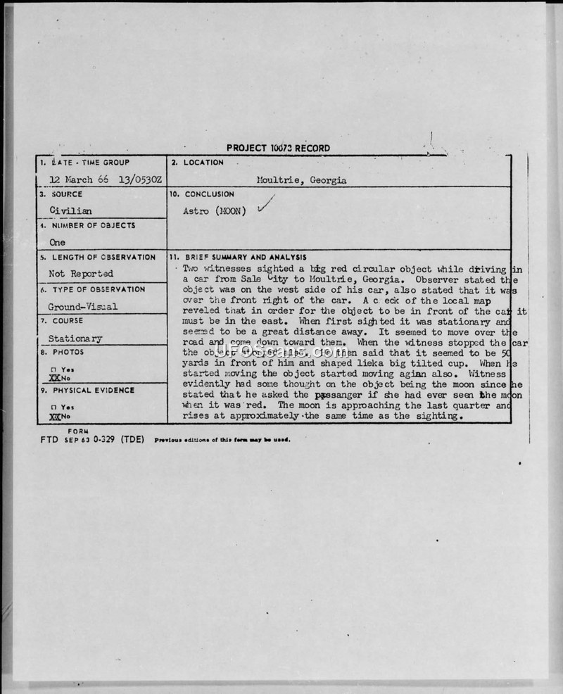 Project 10073 Record — Moultrie, Georgia, 12 March 1966