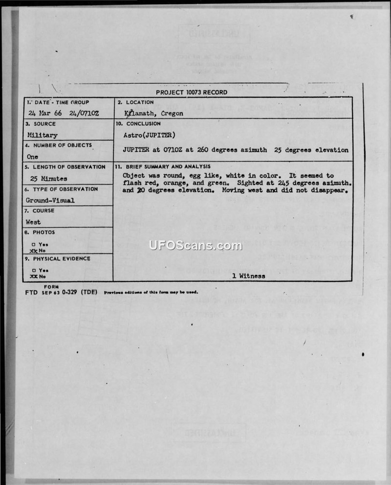 Project 10073 Record — Klamath, Oregon, 24 March 1966