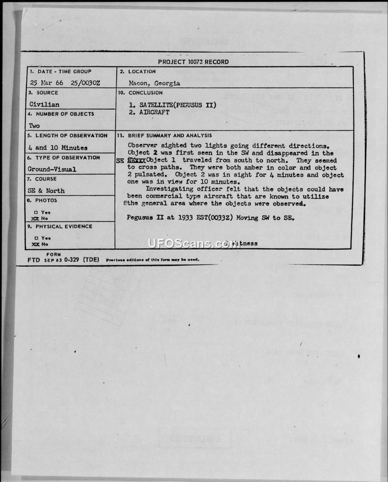 Project 10073 Record — Macon, Georgia, 25 March 1966