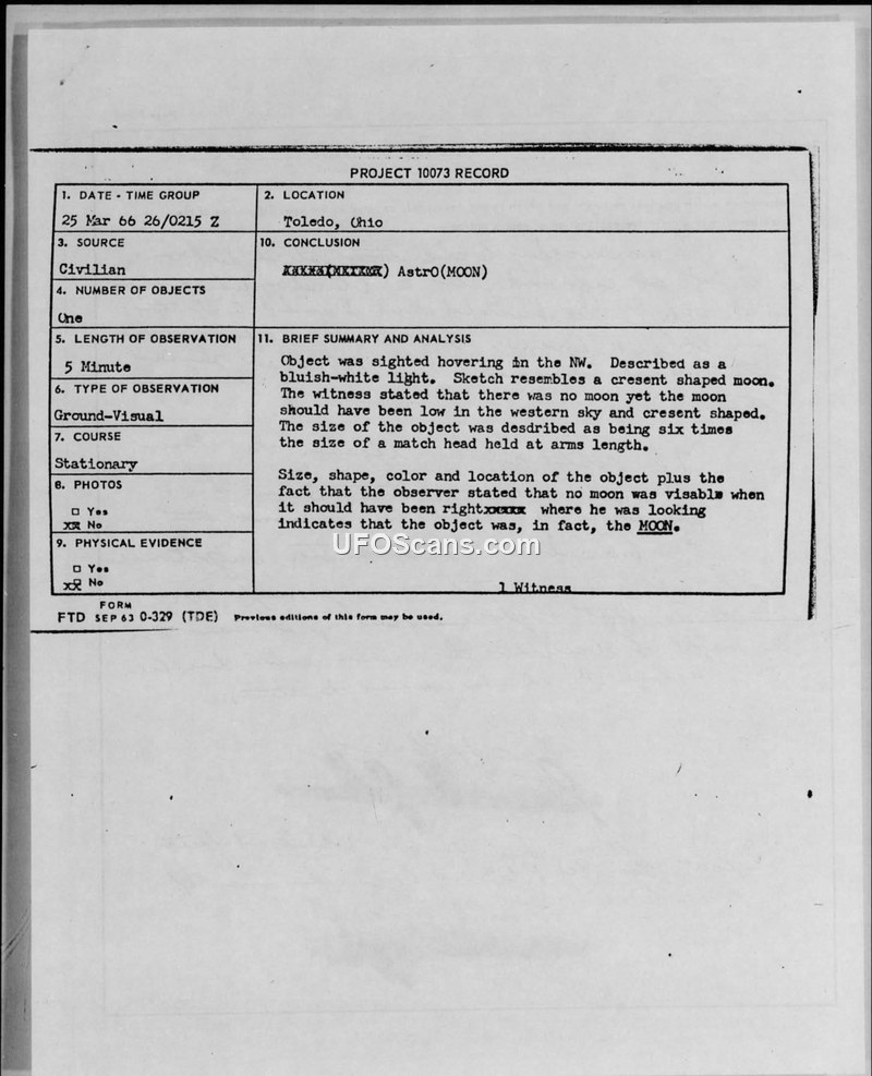 Project 10073 Records: Multiple Sighting Reports, Toledo, Ohio, March 1966