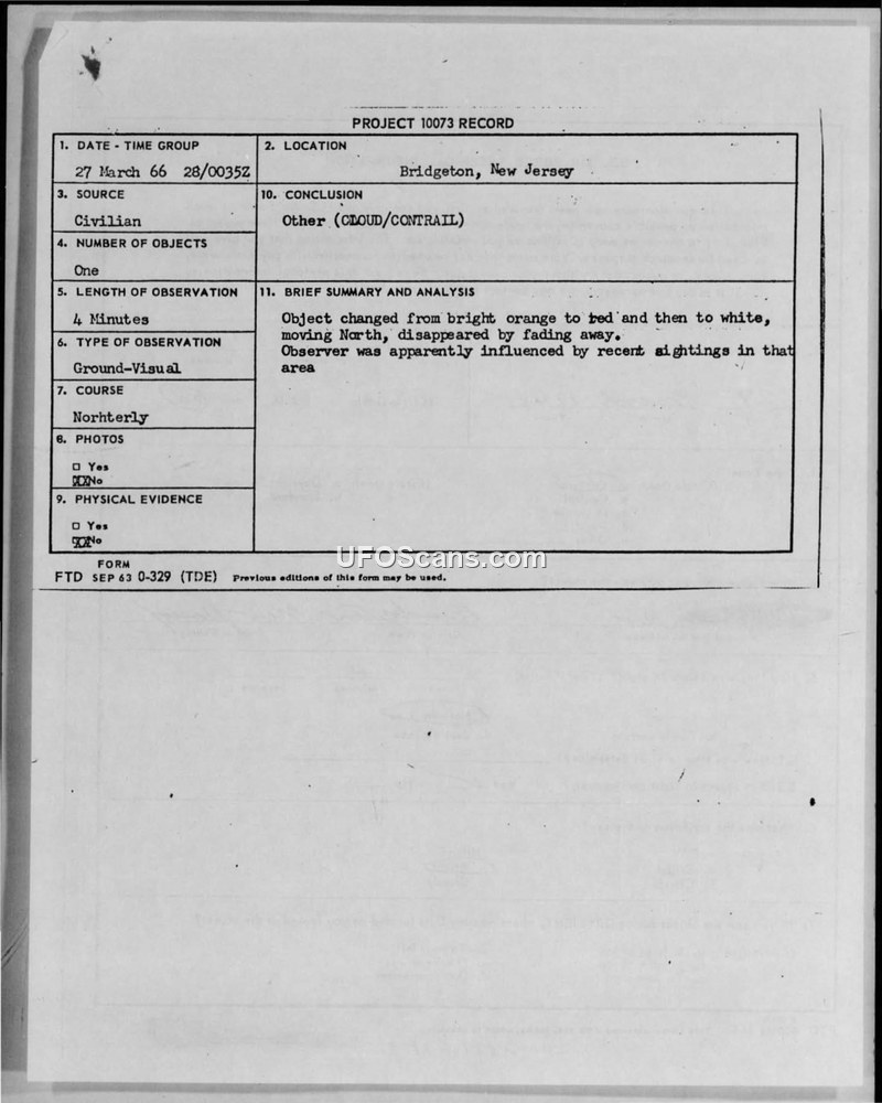 Project 10073 Record — Bridgeton, New Jersey, 27 March 1966