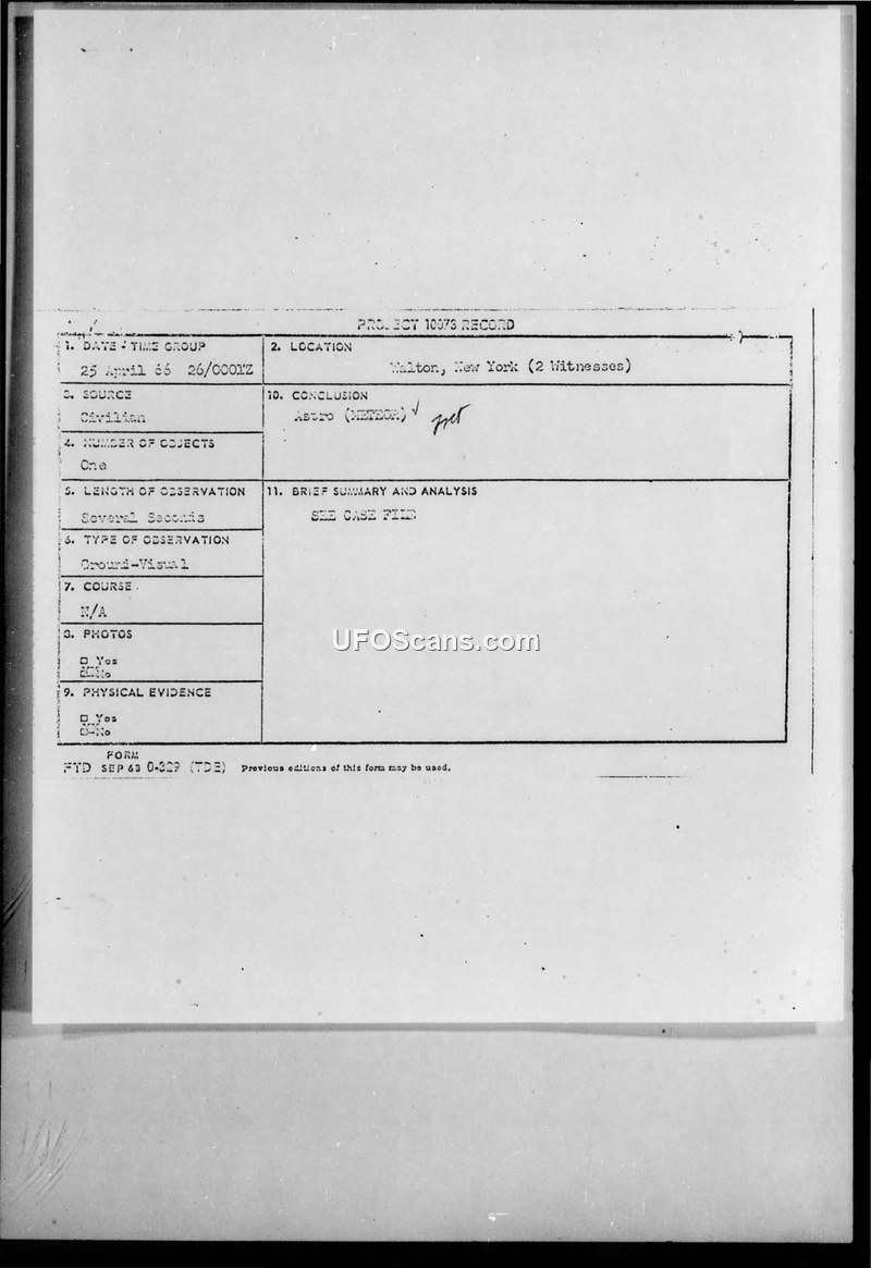 Project 10073 Record — Walton, New York, 25 April 1966
