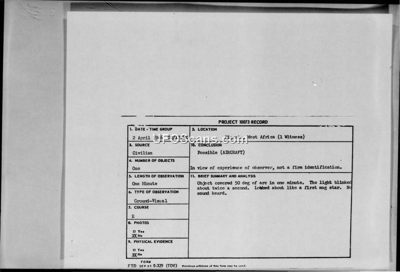 Project 10073 Record — Nigeria, West Africa, 2 April 1966