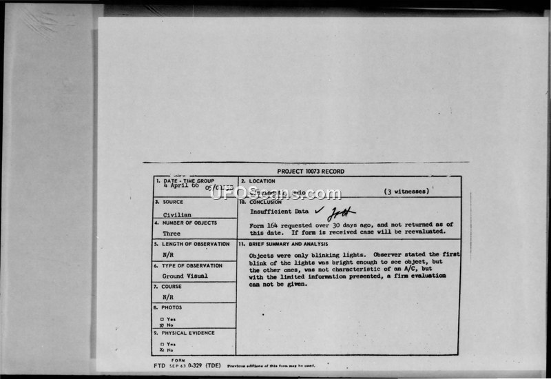 Project 10073 Record — Cincinnati, Ohio, 5 April 1966