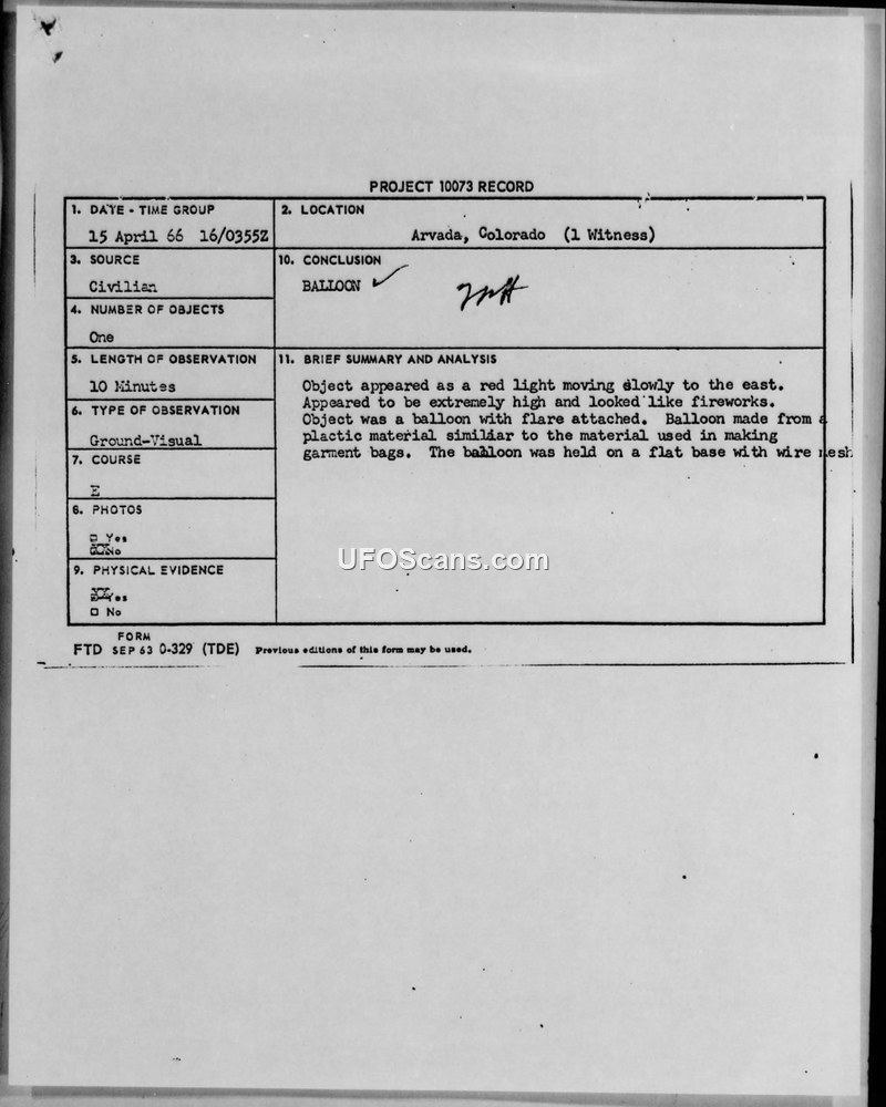 Project 10073 Record — Arvada, Colorado, 15 April 1966