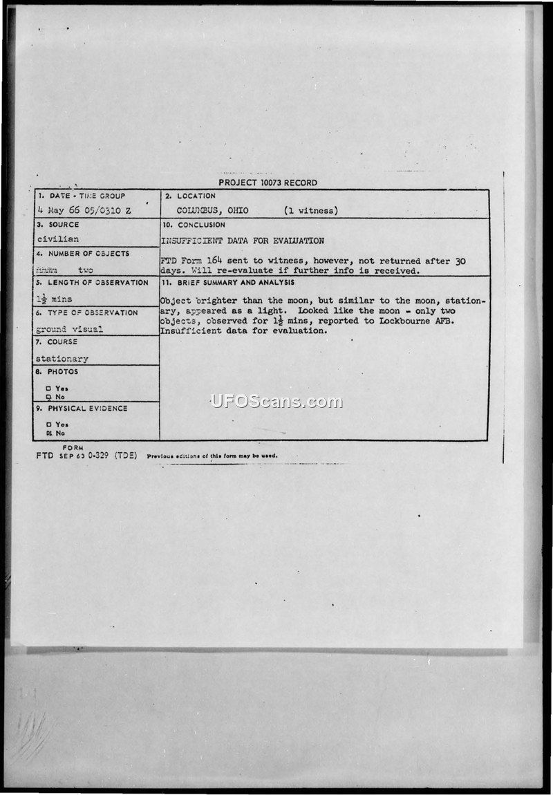 Project 10073 Records — Columbus, Ohio (May 1966)