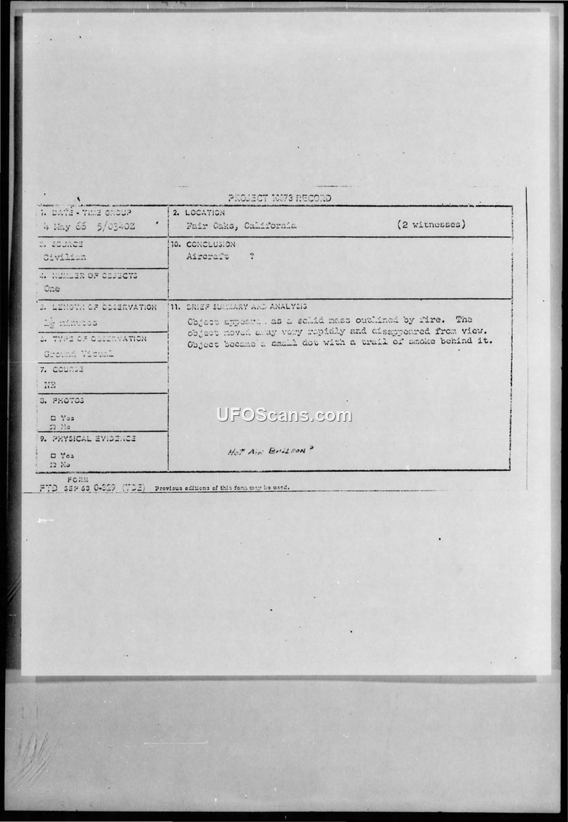 Project 10073 Record: Sighting Report — Fair Oaks, California, 4 May 1966