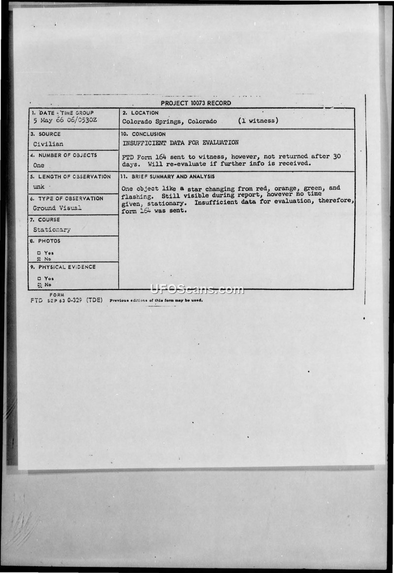 Project 10073 Records: Colorado Springs Sightings (May 1966)