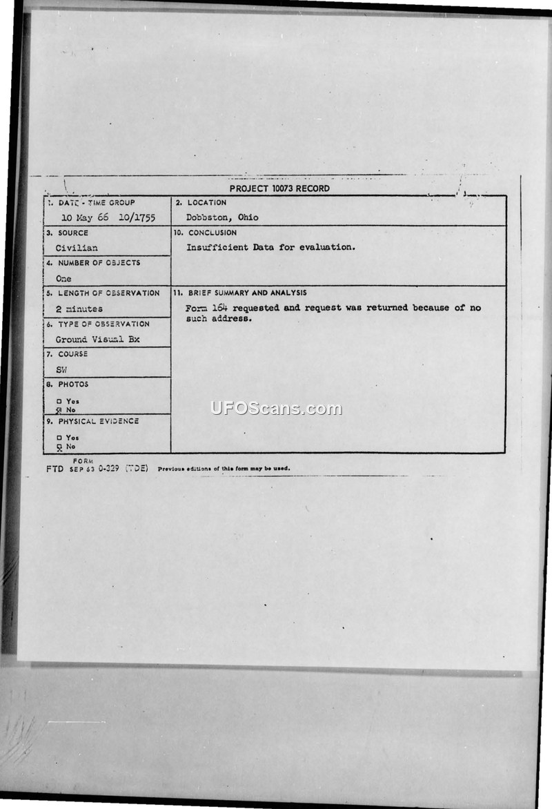 Project 10073 Record — Dobbston, Ohio, 10 May 1966