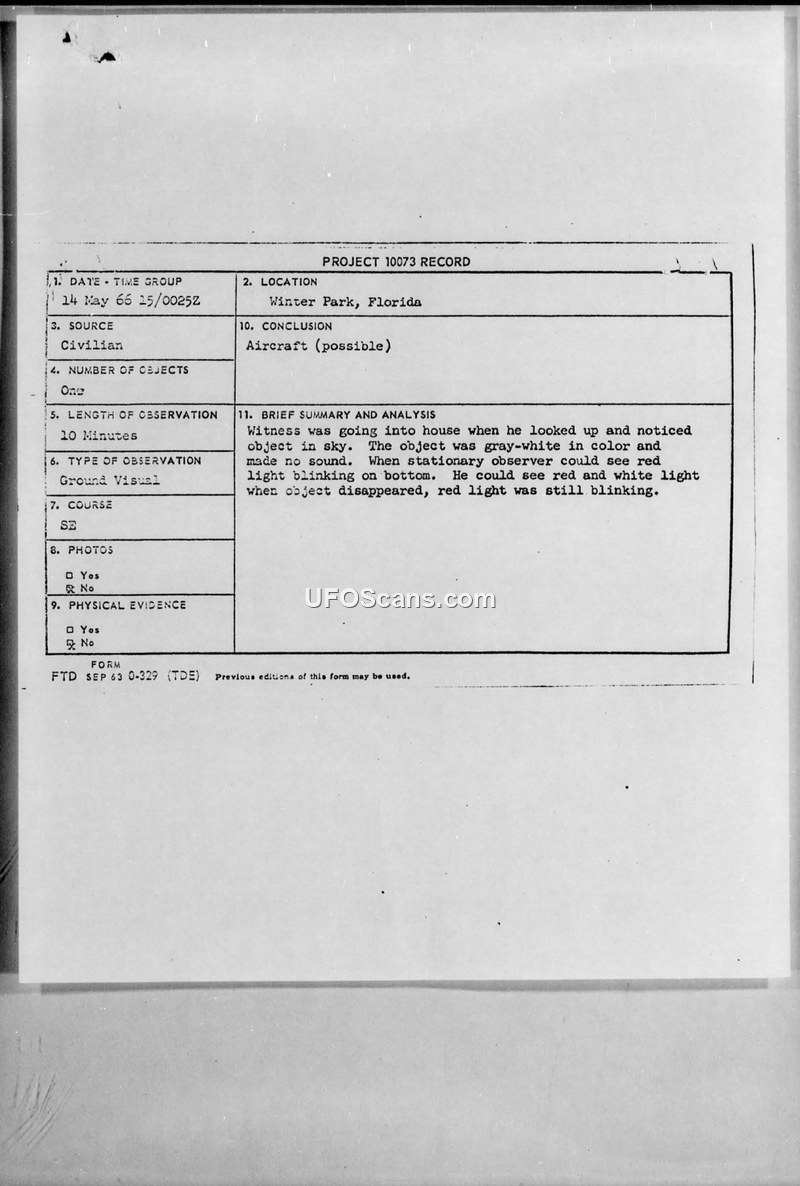 Project 10073 Record — Winter Park, Florida, 14 May 1966