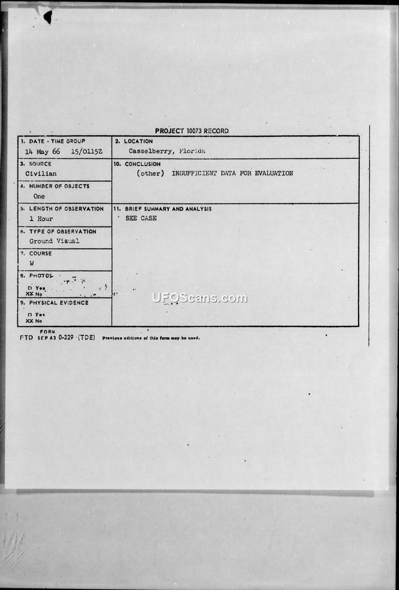 Project 10073 Record — Casselberry, Florida, 14 May 1966