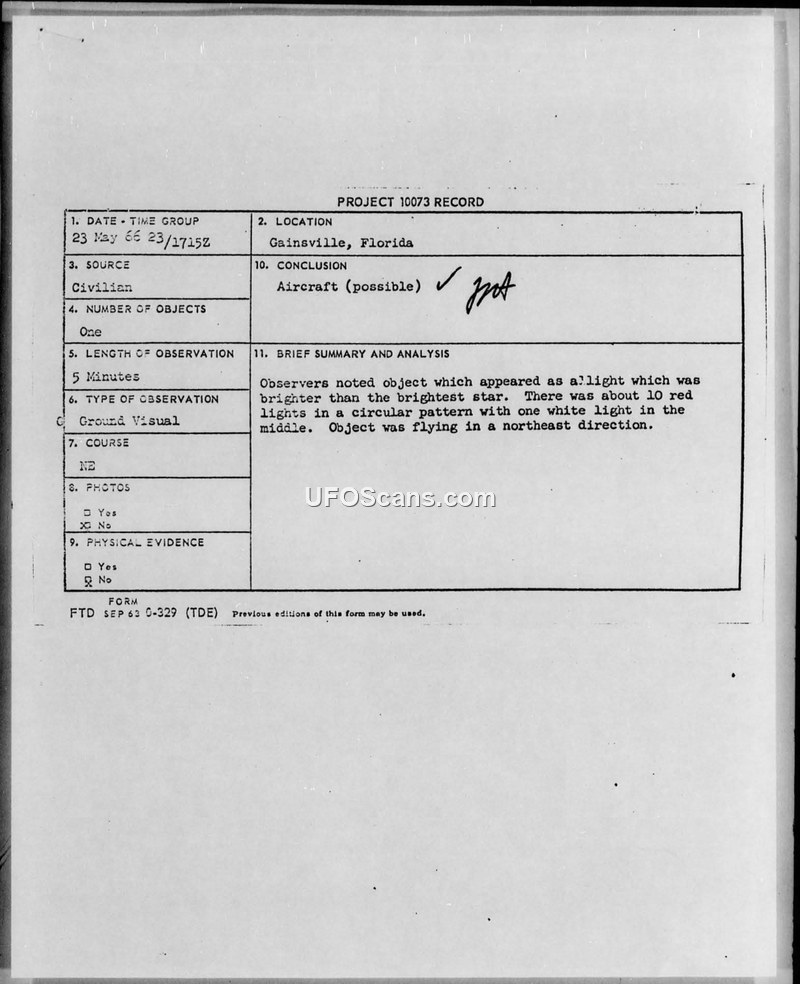 Project 10073 Record — Gainesville, Florida, 23 May 1966