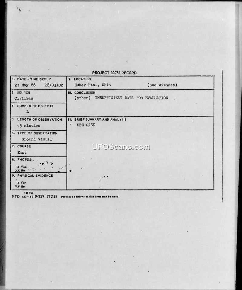 Project 10073 Record — Huber Hts., Ohio, 27 May 1966