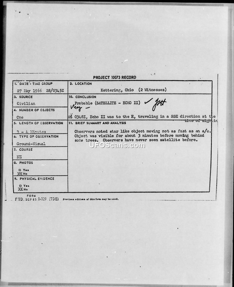 Project 10073 Record — Kettering, Ohio, 27 May 1966