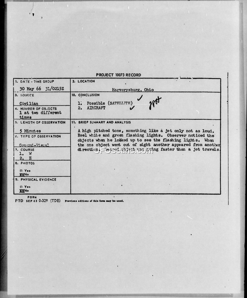 Project 10073 Record — Harverysburg, Ohio, 30 May 1966