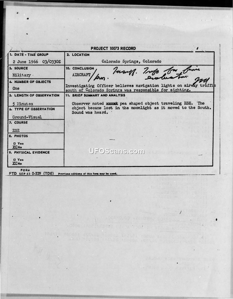 Project 10073 Records — Colorado Springs, Colorado, June 1966